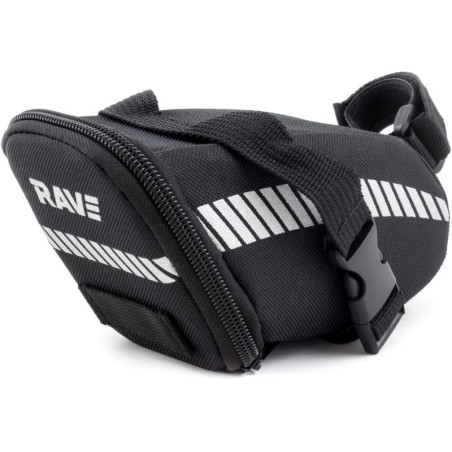 Las alforjas de RAVE son sinónimo de calidad y seguridad. Impresionan por su tejido plástico duradero e hidrófugo. Son adecuadas para llevar utensilios importantes como cámara de aire de repuesto, herramientas, teléfono móvil, etc. y tienen un compartimento interior para el dinero y el kit de reparación. Con un peso de 90 g, nuestra bolsa de sillín M es un peso ligero y puede desmontarse en segundos sin necesidad de herramientas gracias al sistema de enganche. Así que se puede acoplar a otra moto en cualquier comentad . La cinta reflectante de seguridad garantiza además una mayor visibilidad para los vehículos que se acercan por detrás de noche. La bolsa de sillín RAVE está equipada con una pestaña para una luz LED.