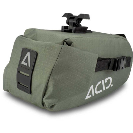 Empaca lo esencial. La bolsa de sillín ACID PRO XL mantiene sus pertenencias guardadas de forma segura bajo el sillín, donde no estorban. El diseño compacto, la construcción impermeable y el soporte de la luz trasera son detalles típicos que hacen que una bolsa de sillín de ACID sea especial.